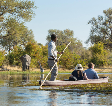Glid ljudlöst på mokoros, lokala kanoter, genom Okavangodletat eller åk på en kanotsafari på Zambezifloden, en oförglömlig äventyrsresa genom ett av Afrikas mest hisnande landskap. Både Zambia, Botswana och Zimbabwe bjuder på äventyr i kanot kombinerat med makalösa safariupplevelser. Ett av de mest populära områdena för kanotsafari är på Zambezifloden, nedströms från Victoriafallen. I skuggan av de mäktiga fallen börjar äventyret. Resan erbjuder en unik möjlighet att uppleva vildmarken och dess rika fauna på ett sätt som få andra destinationer kan matcha. Du och ditt resefölje paddlar längs floden och upptäcker dess mäktiga natur. Ni får möjlighet att komma nära det rika djurlivet längs flodbankarna. Elefanter, bufflar och flodhästar är vanligt att få se längs flodkanten. Njut av den härliga sången från fåglarna som bor längs floden.