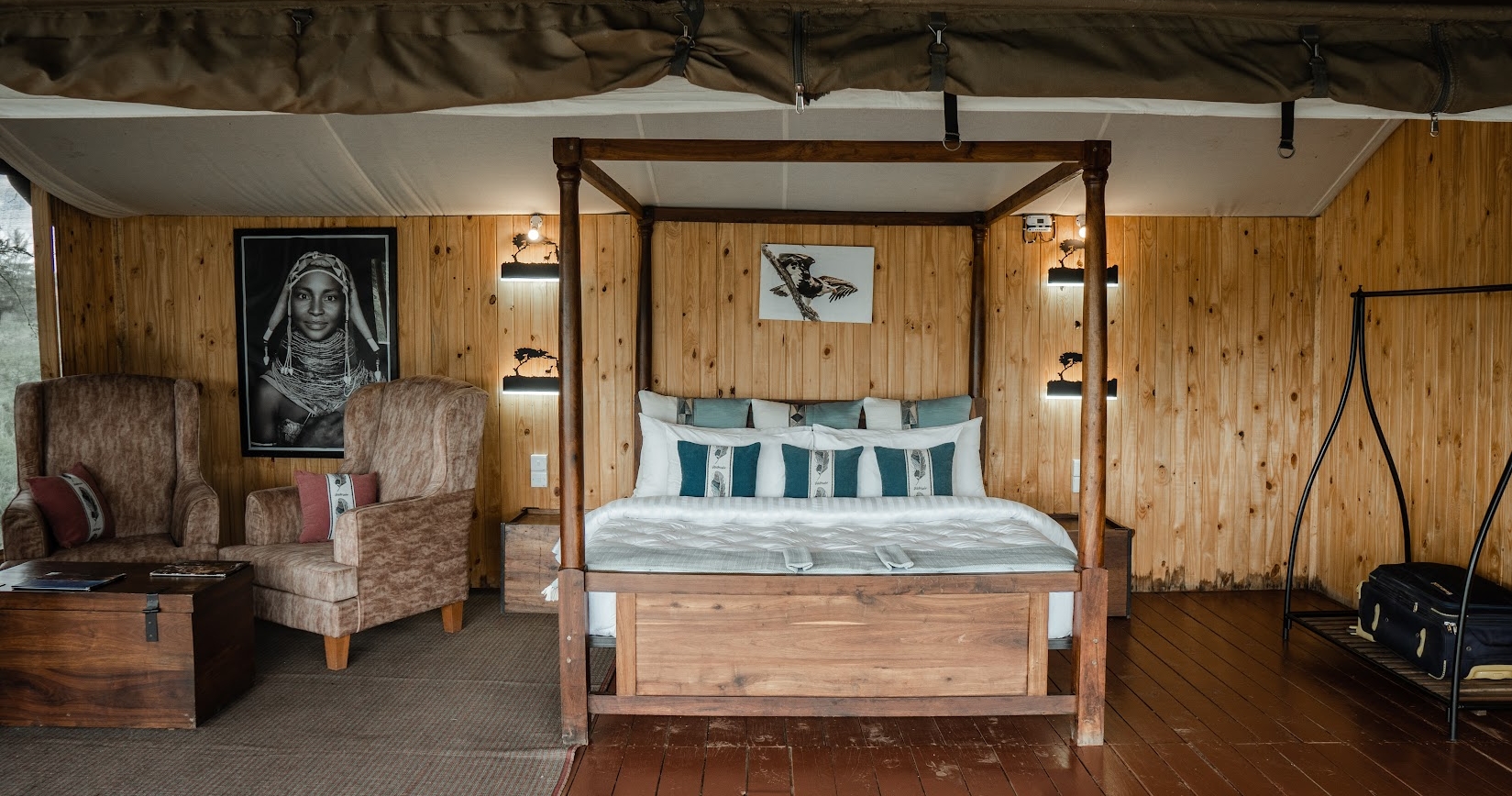 Campen består av ett fåtal rymliga, klassiska safaritält med riktiga sängar, eget badrum och utomhusdusch. Här bor du mitt i vildmarken, men med oväntad komfort. Du vaknar till naturens egna ljud och somnar under en glittrande stjärnhimmel – en autentisk och oförglömlig safariupplevelse, precis som den ska vara.