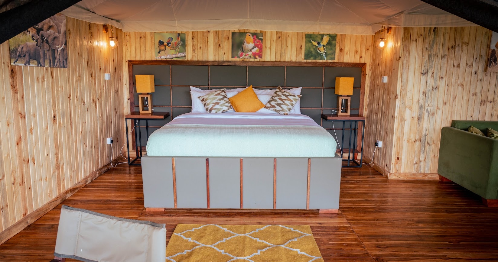 Alla tält har en uteplats, sovrumsdel, och eget badrum med dusch och toalett. Här kan du njuta av naturens lugn och närheten till parkens rika djurliv.