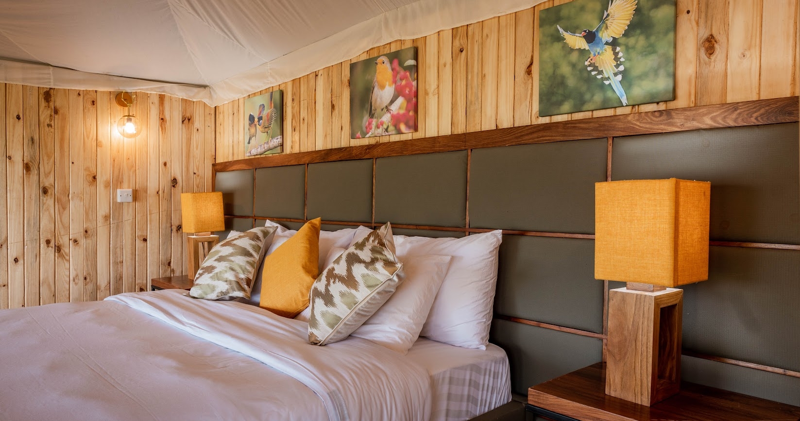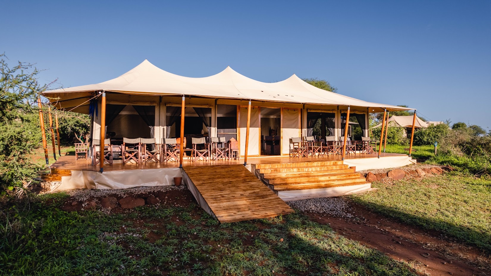 Lodgen erbjuder 16 tältstugor med privat balkong, fullt utrustade badrum och utomhusdusch. Poolen och restaurangen är smakfullt placerade för att smälta ihop med omgivningen.