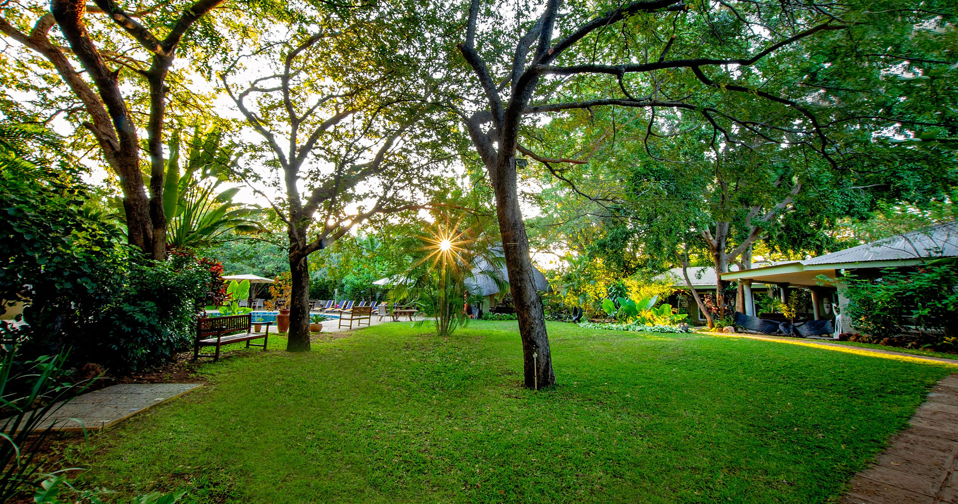 Här råder lugn och harmoni. Med två pooler, ett spa och en frodig trädgård finns det goda möjligheter till avkoppling mellan dina safariäventyr.