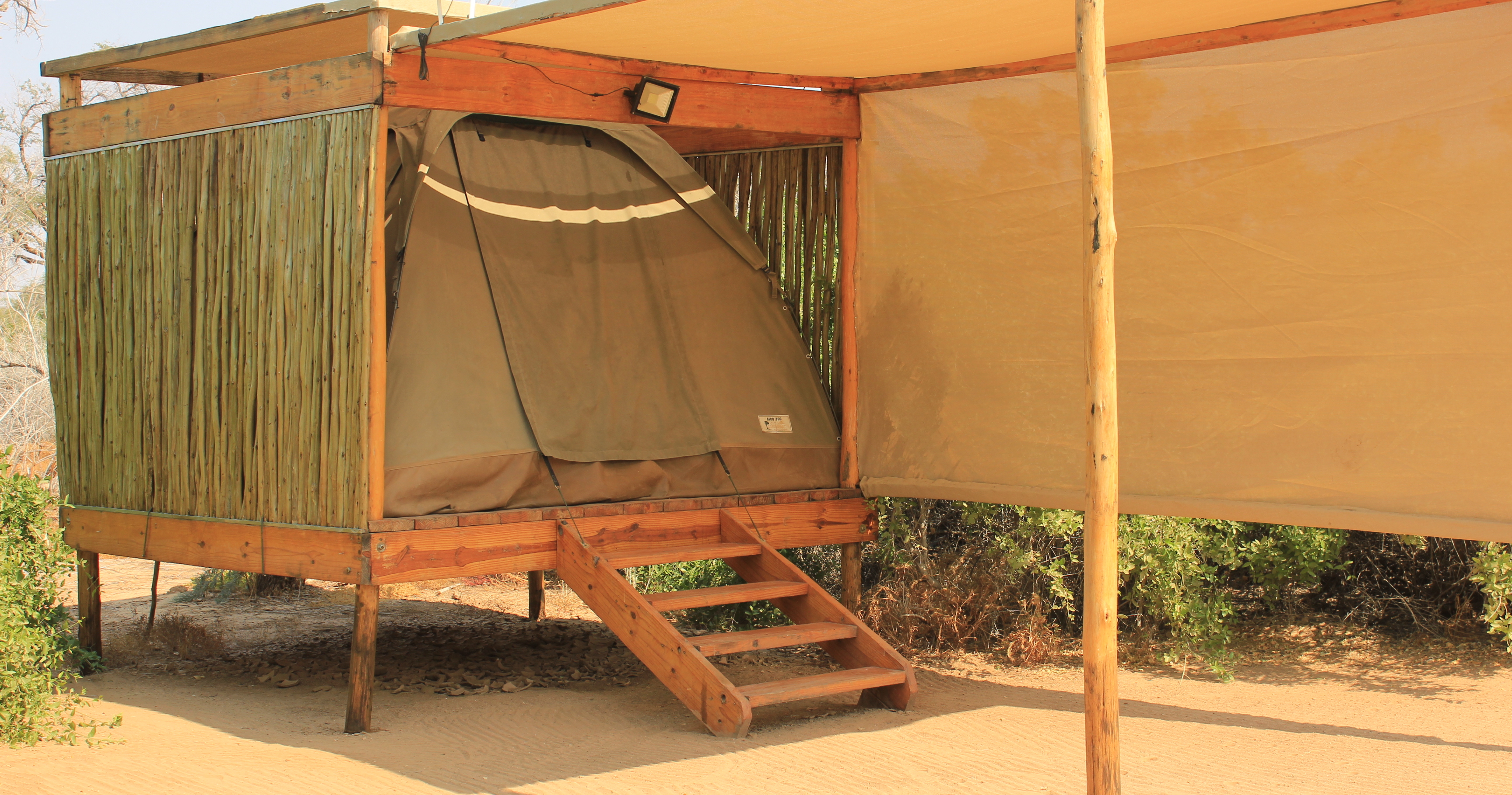 Campingen saknar elektricitet men det går att ladda telefonen i lodgen. Du som campinggäst har också möjlighet att nyttja lodgens pool, bar och restaurang.