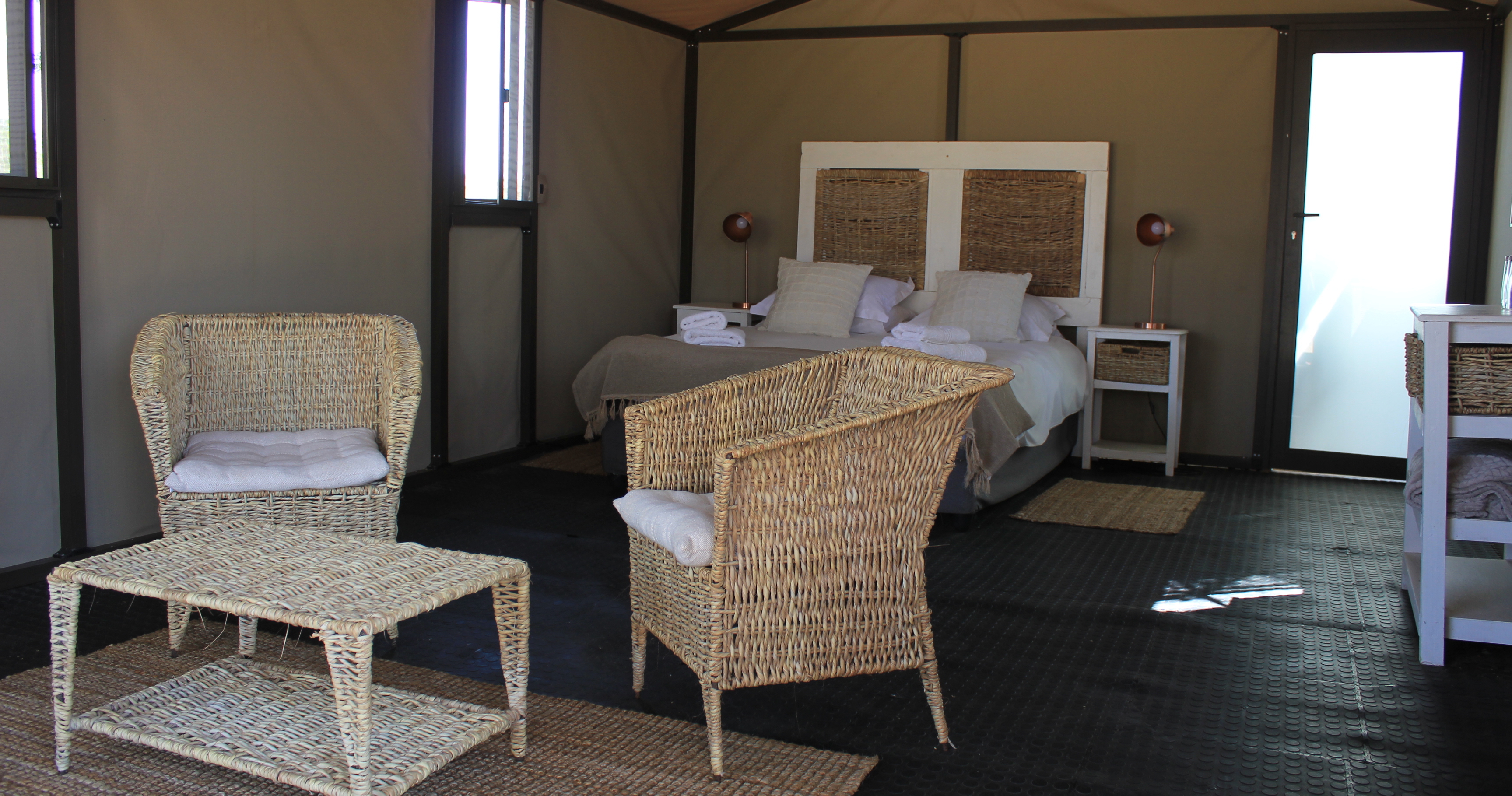 Campingen består av sju rymliga och avskilda platser, var och en inbäddad mellan stora stenblock för ökad integritet. Varje plats har egna sanitetsfaciliteter med dusch, handfat och toalett, samt ett område för disk. Det finns en stående grillplats (braai) och en skuggad sittplats vid varje campingplats, vilket möjliggör utomhusmatlagning och avkoppling.