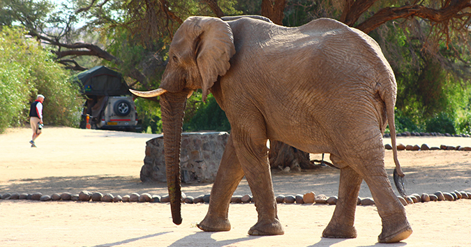 Elefanter har varit kända för att våga sig genom lodgeområdet och campingplatsen på natten, så håll ögonen öppna för dessa vackra jättevarelser. Njut av den robusta skönheten i Damaraland med sin autentiska namibiska karaktär!
