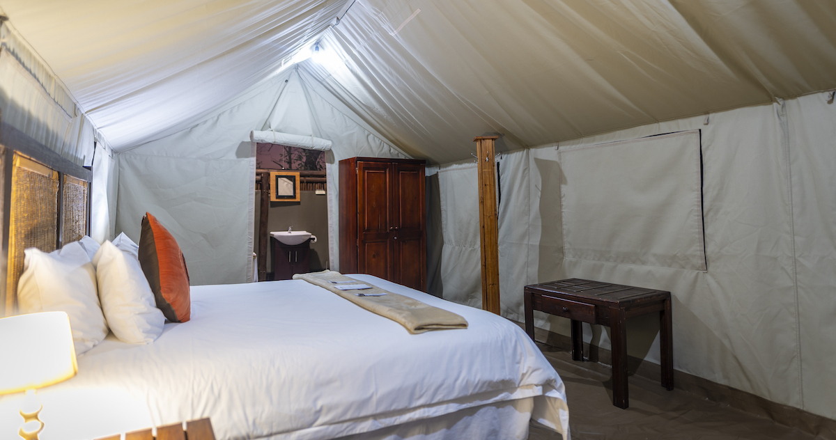 Med endast fyra lyxiga tält, omgivna av storslagen natur och utrustade med stilfull inredning och moderna bekvämligheter, erbjuder campen en personlig och oförglömlig vistelse. Här kan du gå ut på vandringssafari eller välja att sova utomhus under Afrikas stjärnhimmel.
