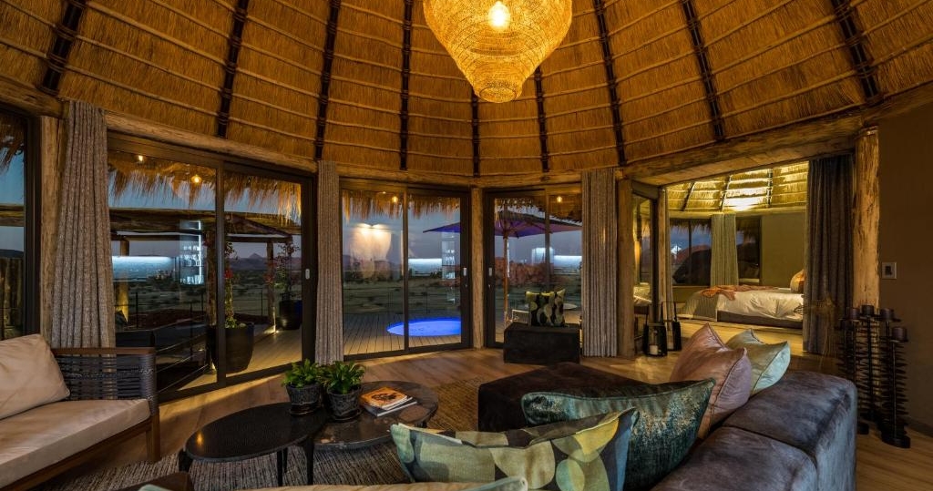 Lodgen erbjuder tolv exklusiva sviter byggda i sten och glas. Varje svit har ett utdragbart takfönster för att titta stjärnorna från sängen, en privat och veranda med och pool. Här kan du njuta av stjärnklar himmel, enastående utsikt och ett överväldigande lugn i ett av Afrikas mest fascinerande landskap.