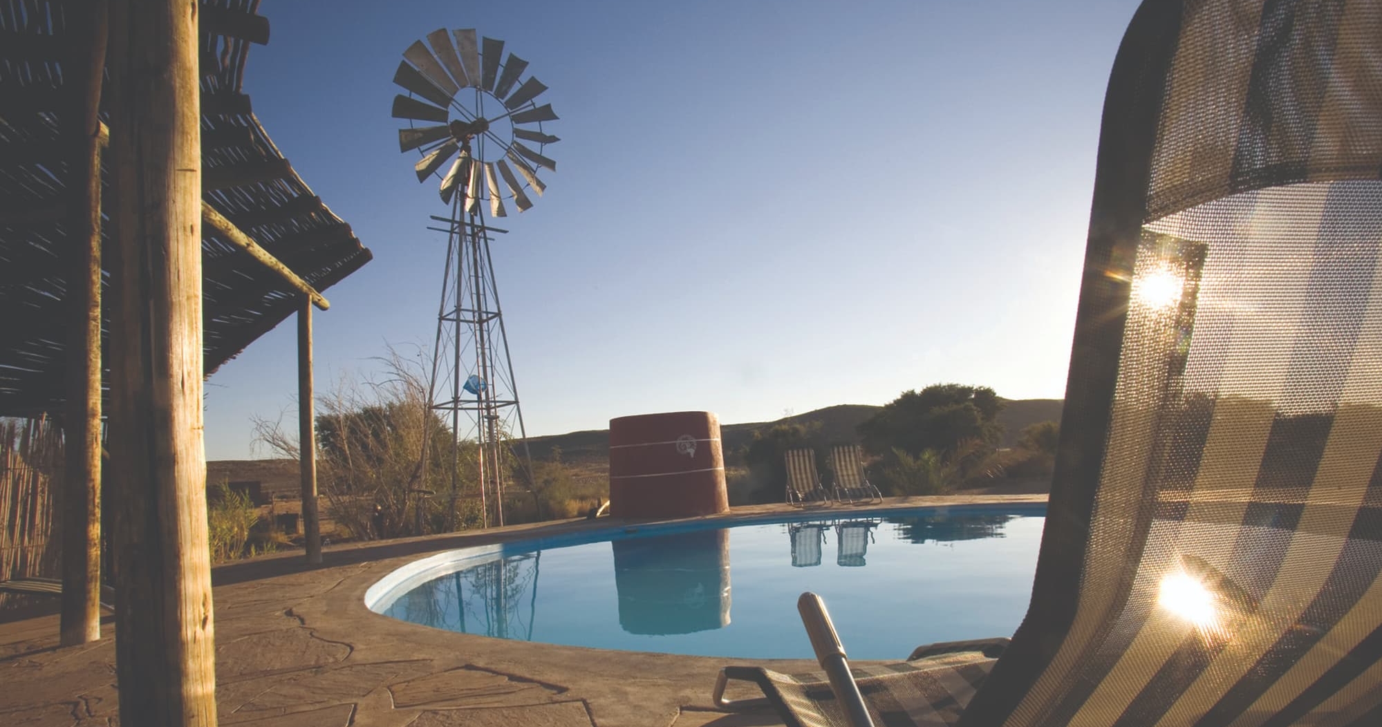 Fish River Lodge är en exklusiv lodge, unikt belägen på västra kanten av Fish River Canyon. Boendet är den enda lodgen belägen direkt vid Fish River Canyon. Här bor du omgiven av 45 000 hektar orört landskap. Denna avlägsna och unika plats erbjuder en enastående utsikt från soluppgången till solnedgången. Arkitekturen och interiören är inspirerade av det robusta landskapet.