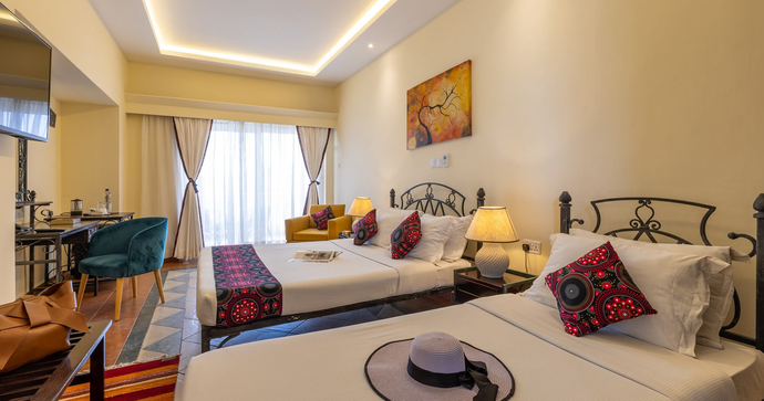 Jacaranda Indian Ocean Beach Resort är en pärla för dig som söker en genuin, prisvärd och avkopplande upplevelse vid Diani Beach. Här omfamnas du av en miljö präglad av Swahili-kultur, där varje rum – från trädgårdsrum omgivna av frodiga trädgårdar till strandnära rum med utsikt över den azurblåa Indiska Oceanen – ger en känsla av ro.