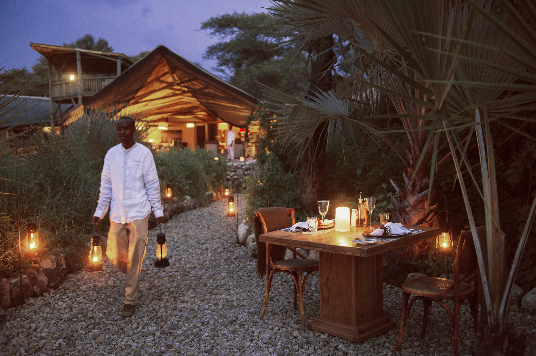 Njut av elegans mitt i naturen. Lodgen är upphöjd på en träplattform under ett halmtak där du kan njuta av måltider med en fantastisk 360-graders utsikt över Lake Burunge och den omgivande vildmarken.