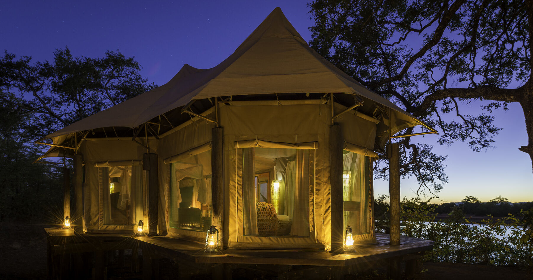 Zungulila Bushcamp i South Luangwa, en av Afrikas mest orörda vildmarksområden, är en klassisk tältcamp och består av fyra rymliga tält i Meru-stil, alla med egna badrum, utomhusduschar och stora badkar. Campen är öppen mellan april och januari.