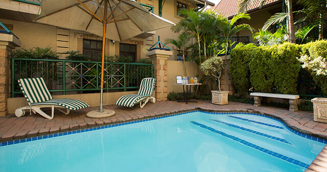 I den frodiga trädgården finns en härlig pool och en eldstad. AtholPlace är perfekt för dig som söker ett exklusivt boende och en avkopplande vistelse i hjärtat av Johannesburg.