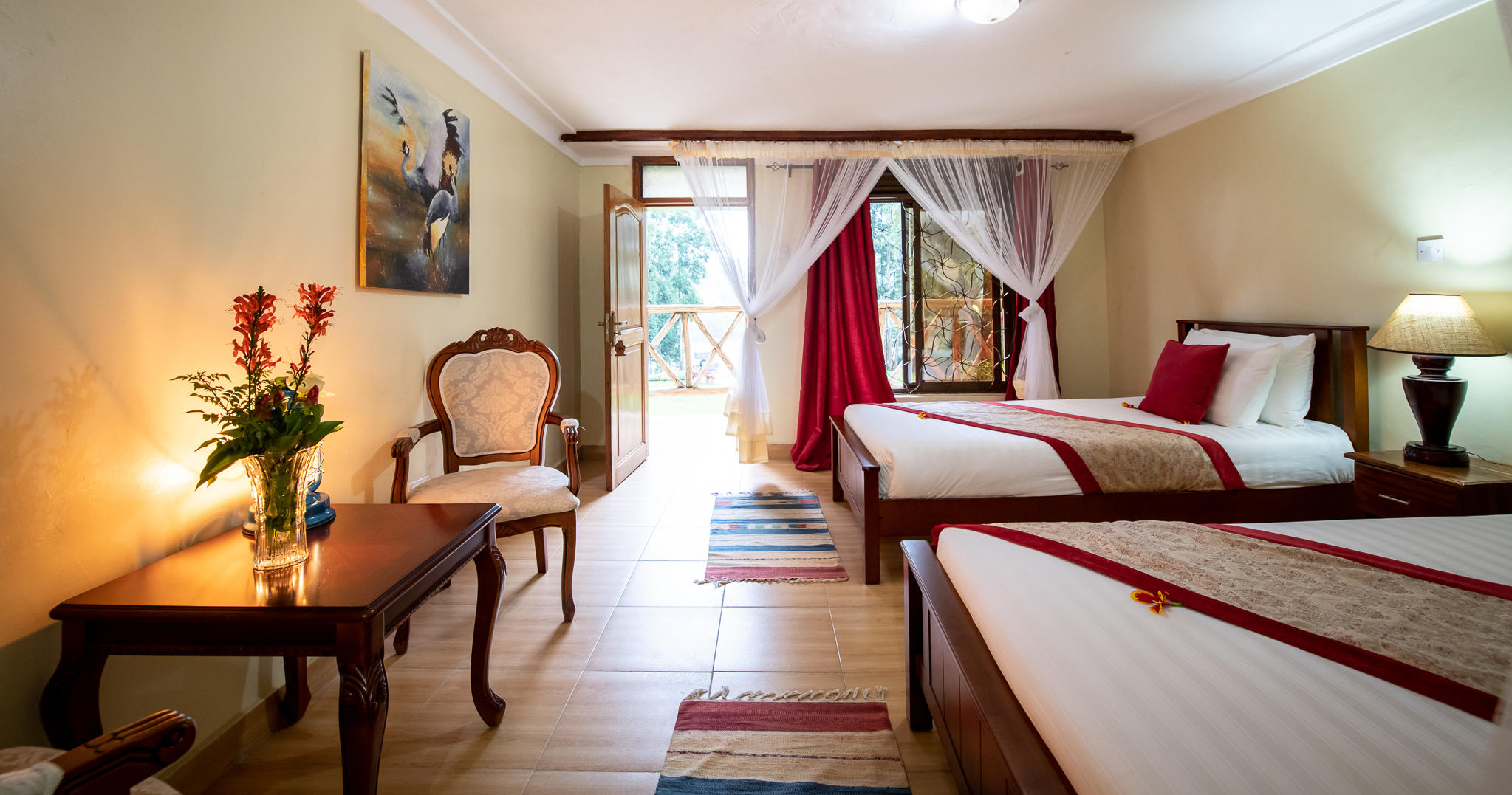 Lodgen har fått sitt namn efter Mantled Guereza-apan, ofta känd som den vita och svarta colobus-apan. Här kan du bevittna apor äta och hoppa i trädtopparna precis utanför ditt rum.