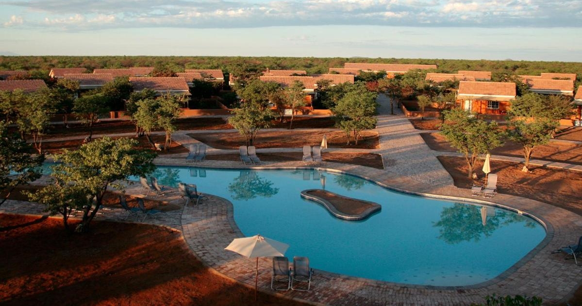 Precis som ett gammalt afrikanskt kungarike är Damara Mopane Lodge konstruerad i en halvcirkel av sammanlänkade gångar som leder till en lyxig swimmingpool i mitten. Innovativt designade har varje stuga sin egen lilla trädgård med grönsaker. Ljusgula solrosor tittar fram mellan grön spenat, rödbetor och excentriska fågelskrämmor, vilket skapar en förtrollande lodgemiljö. Labyrinten av gångar leder till ett stort och glatt centrum. En fräsch grönska lyser upp interiören, liksom de hjärtformade mopane-bladen finns runt hela lodgen.