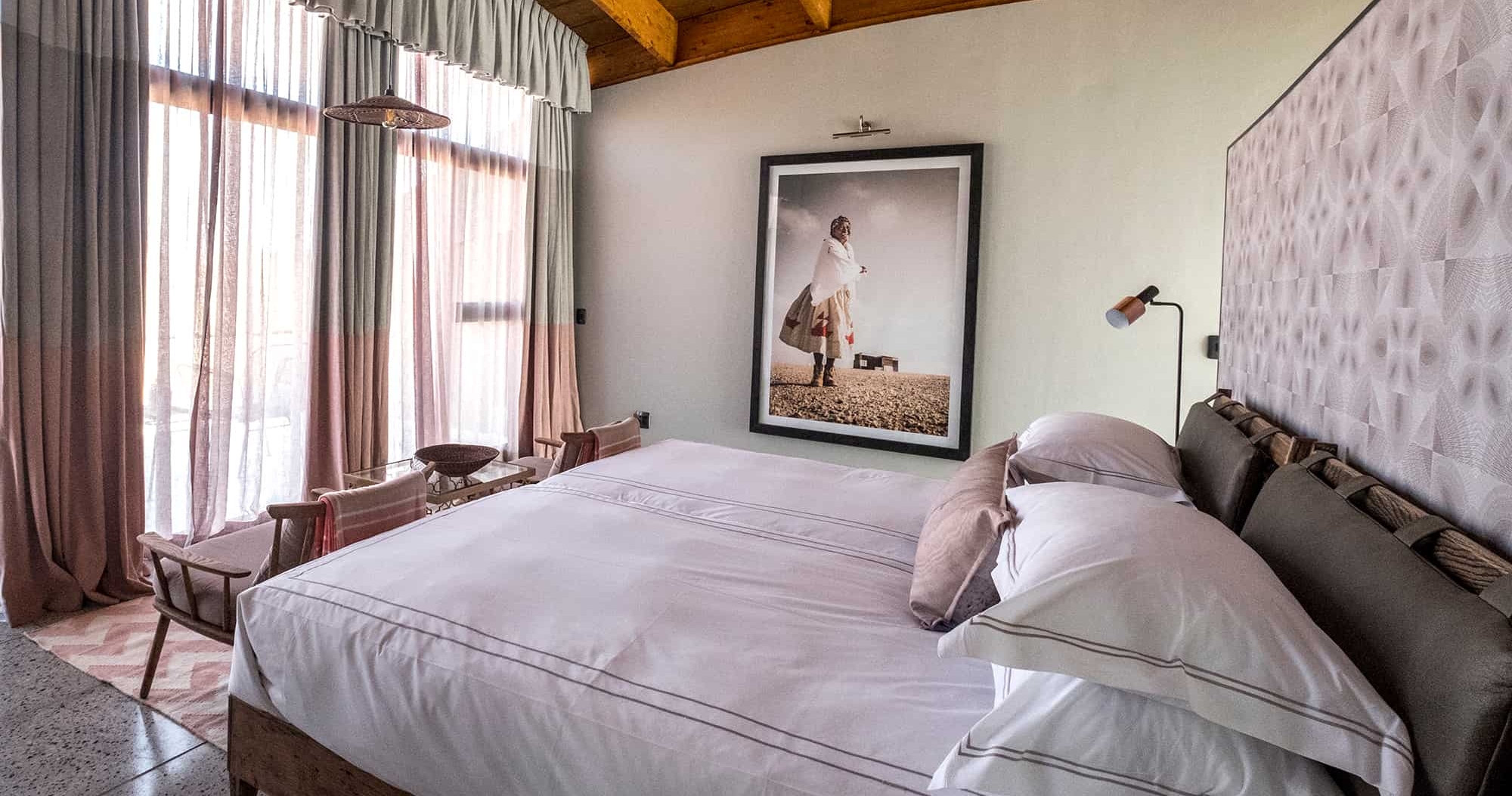 Lodgen erbjuder tolv exklusiva sviter byggda i sten och glas. Varje svit har ett utdragbart takfönster för att titta stjärnorna från sängen, en privat och veranda med och pool. Här kan du njuta av stjärnklar himmel, enastående utsikt och ett överväldigande lugn i ett av Afrikas mest fascinerande landskap.