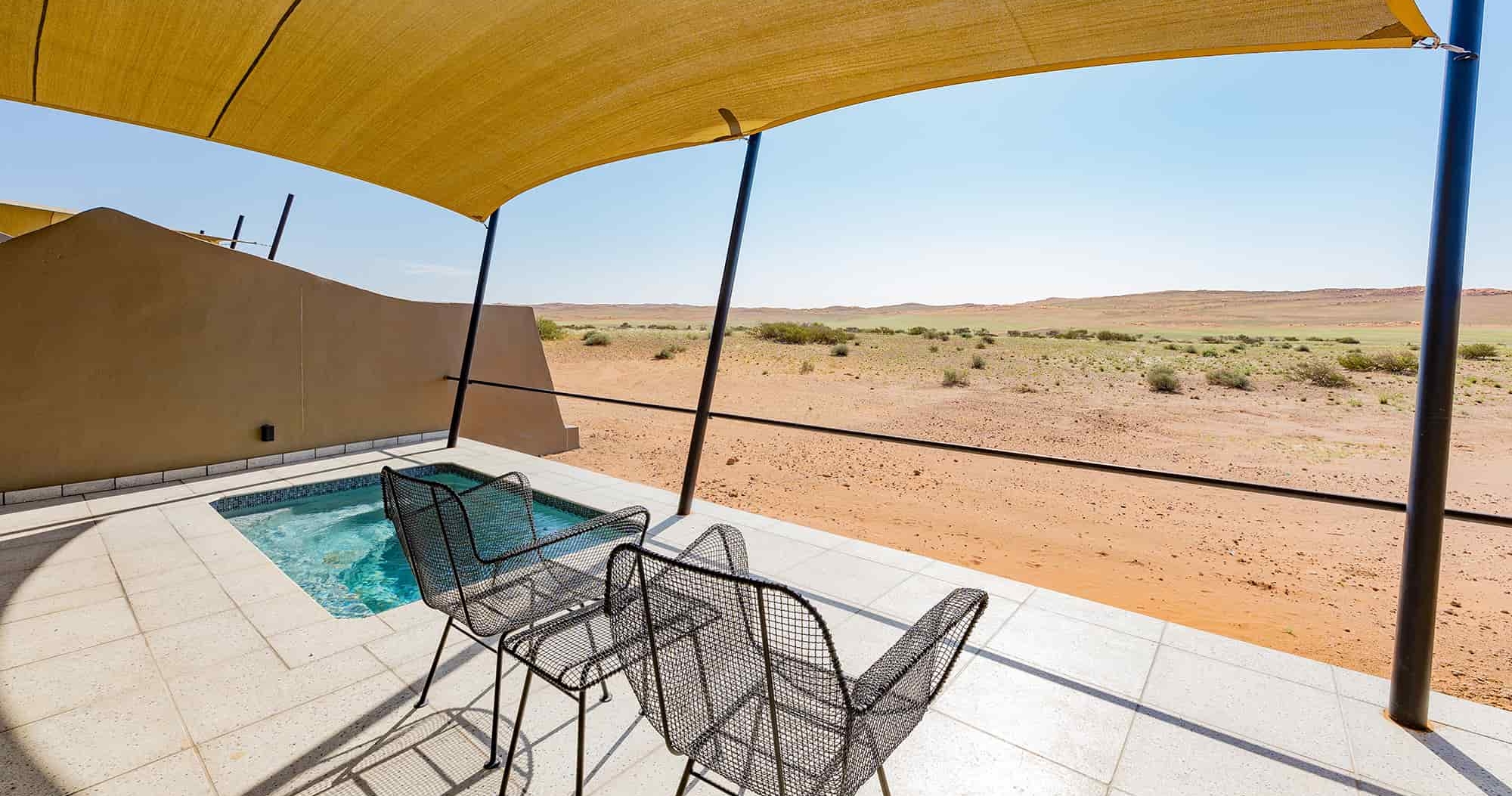 Här erbjuds en rad olika aktiviteter som naturvandringar och dagsturer till Sossusvlei. Det är ett idealiskt boende för dig som söker en privat och lyxig upplevelse i Namibias öken.