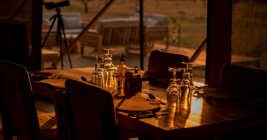 Campen består av rymliga canvastält med privata badrum och en enkel men smakfull inredning. Här bor du bekvämt, men med naturen tätt inpå. Måltiderna lagas på plats och serveras ofta utomhus – en lugn paus mellan dagens safariäventyr.