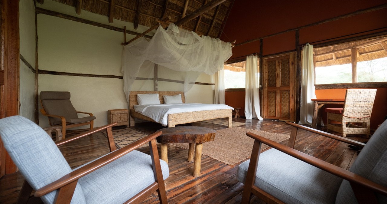 Vandringen upp till rummen är en upplevelse i sig själv, med välunderhållna gångstigar och vilda träd. Den rika naturen och den frodiga omgivningen tillsammans med fågelsången är en upplevelse för livet. Alla stugor är vackert placerade i landskapet och har utsikt över Lake Kikorongo, Lake George och den enastående naturen i Queen Elizabeth National Park. Varje stuga erbjuder möjlighet till avskildhet så att varje gäst kan koppla av i sitt eget lilla paradis.