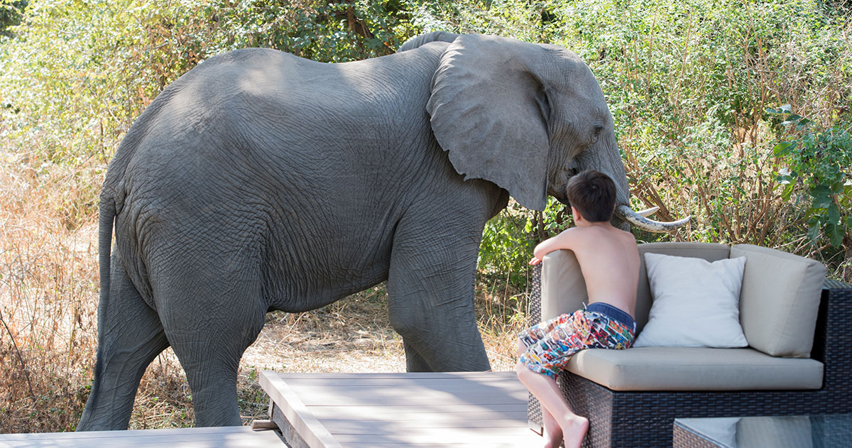 Mfuwe Lodge, känd som “lodgen som elefanterna går genom” eftersom det i november månad är vanligt att elefanter vandrar rak genom lodgen. Denna prisbelönta lodge är belägen i South Luangwa National Park, omgiven av två laguner och av ebony- och mahognyskog.