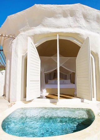 Kilindi är perfekt för romantiska resor. Här finns en stor infinitypool och en “vattenfalls”-bar. Det här är en plats för avkoppling och njutning. Vad sägs om utsökta middagar i solnedgången, mitt på stranden?