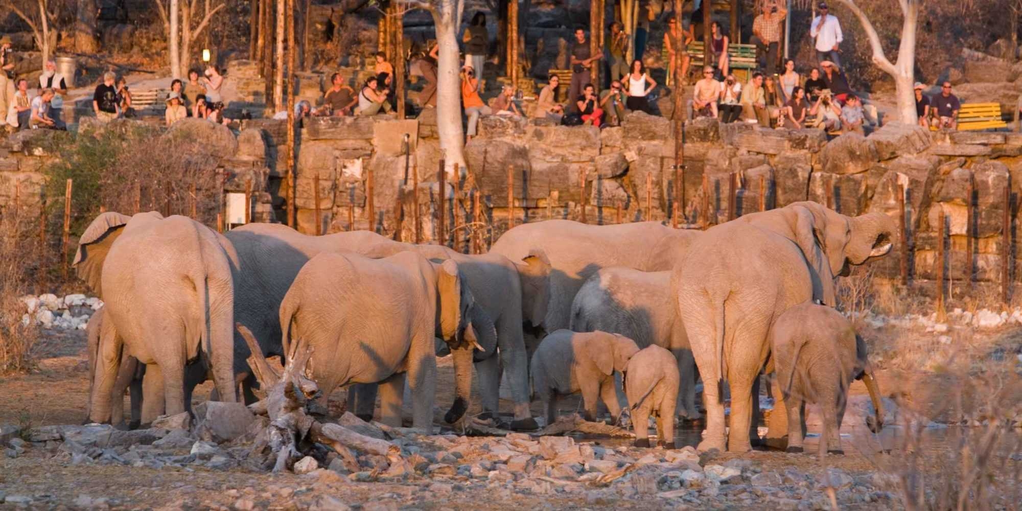 Okaukuejo Camp erbjuder ett av de bästa vattenhålen i Etosha National Park, beläget inom parken bara 17 km från Anderson Gates södra ingång. Campen tillgodoser en variation av preferenser med både camping- och stugor.