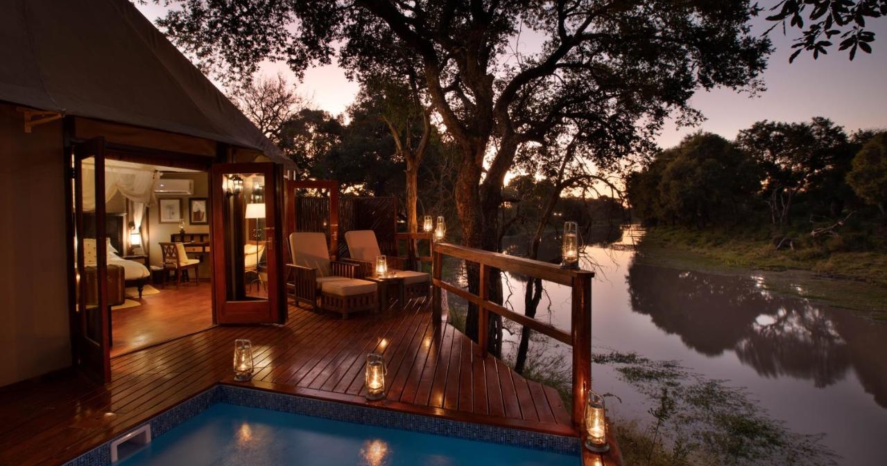 Varje svit har modern afrikansk design, fullt utrustat badrum, privat terrass med uppvärmd spa-bad och utsikt över flodbädden. Mellan safariturerna finns det möjlighet att koppla av vid poolen eller ge sig ut på promenader i omgivningen. Det här är ett perfekt boende för dig som söker en exklusiv och avskild safariupplevelse.