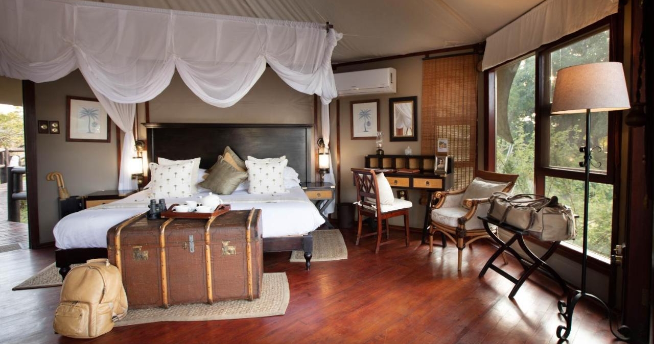 Lodgens lyxiga och upphöjda tältsviter, belägna på stranden av N'waswitsontso-floden, har panoramafönster och rymliga terrasser från vilka du kan njuta av utiskten över floden och förhoppningsvis få uppleva områdets rika djurliv sammtidigt som du doppar dig i din privata pool. På Hamilton Tented Lodge får du prisvärd lyx i en privat miljö.