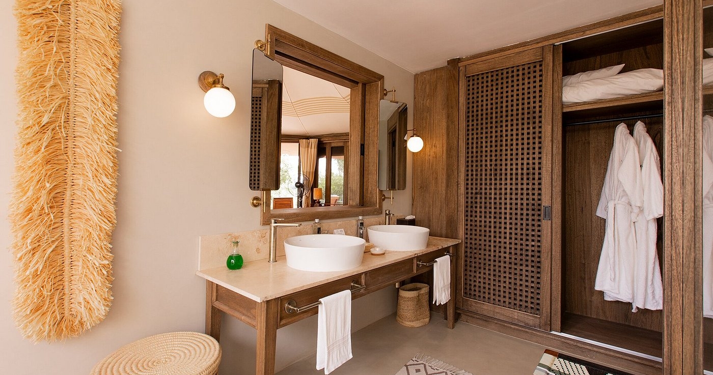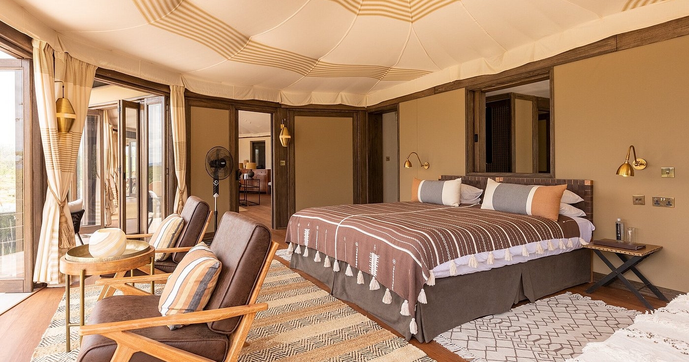 Boendet består av tältade sviter, utsmyckade med antikviteter och lokalt hantverk, där varje svit har bekväma sängar, fullt utrustade badrum och stora privata terrasser som erbjuder fantastisk utsikt.
