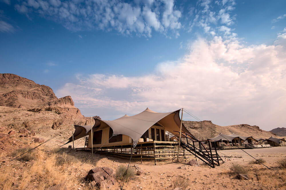 Hoanib Valley Camp, beläget i den avlägsna Hoanib-dalen, erbjuder en exklusiv och miljömedveten safariupplevelse. Med endast sex lyxiga tält är det här ett perfekt boende för dig som söker en intim och autentisk ökenupplevelse.
