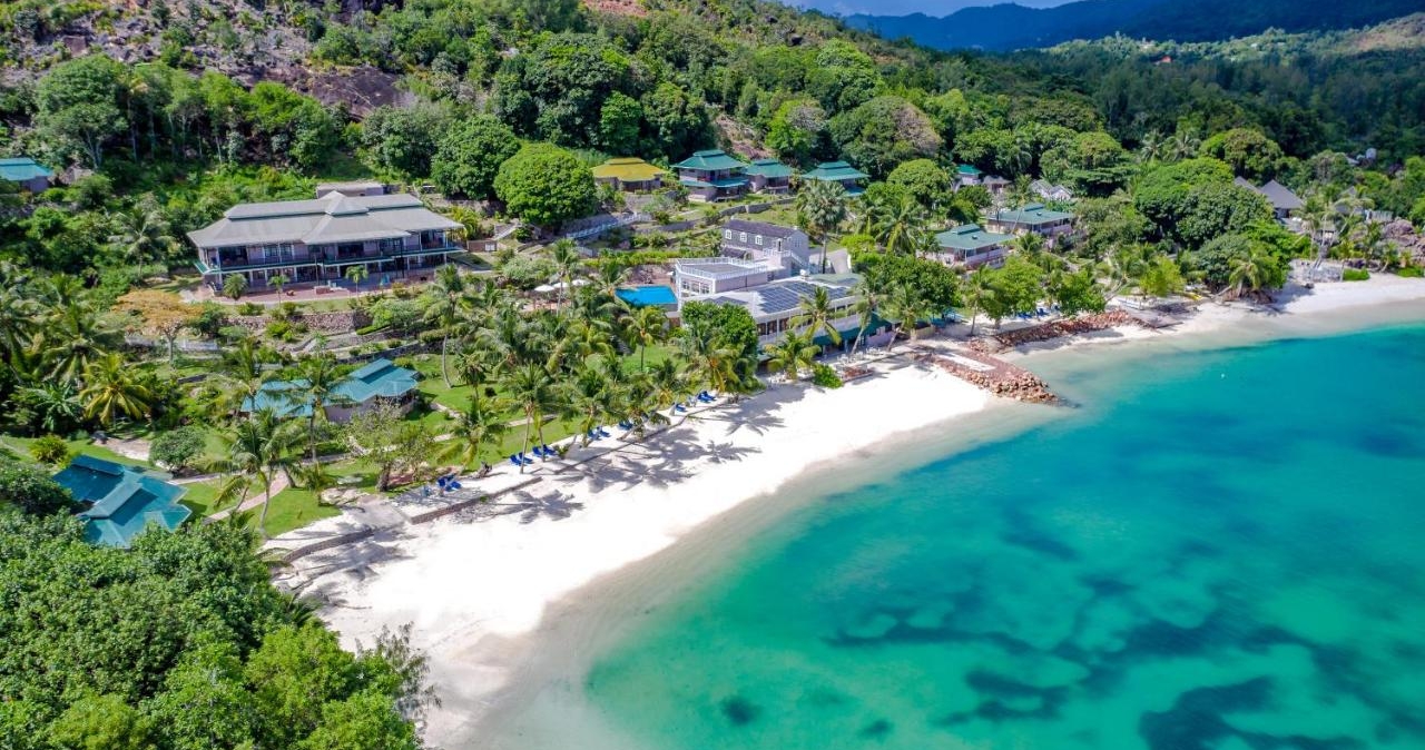 Med den tropiska skogen som bakgrund och omgivet av det milda vattnet i Indiska Oceanen, hittar vi detta underbara hotell på Praslins sydvästra kust.