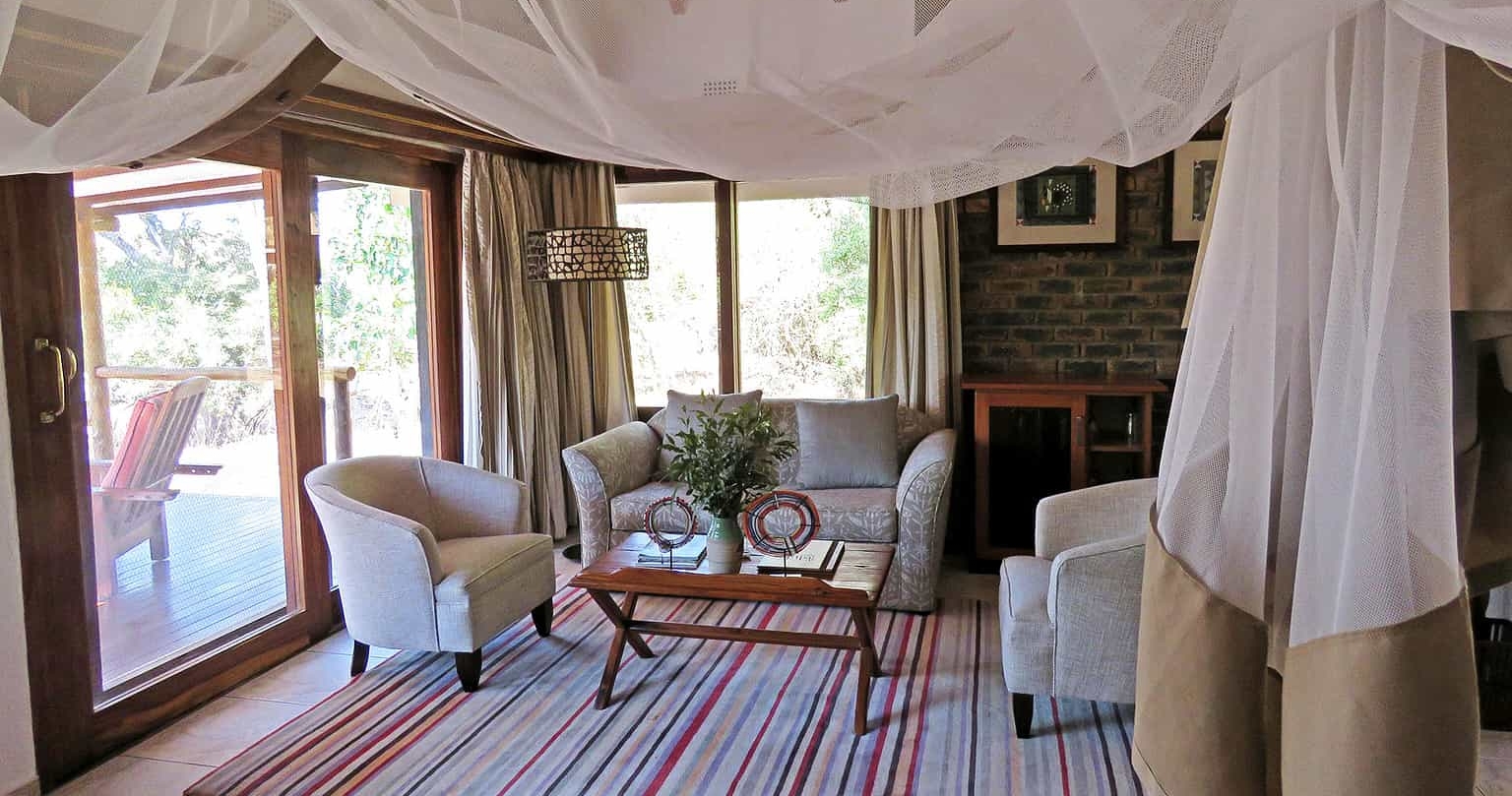 Från sviternas terrass kan du blicka ut över N’waswitsontso River och vidsträckta grässlätter. Lodgen har faciliteter som pool och spabehandlingar. Ett bra alternativ för dig som reser med familjen då barn över åtta år är välkomna att följa med.