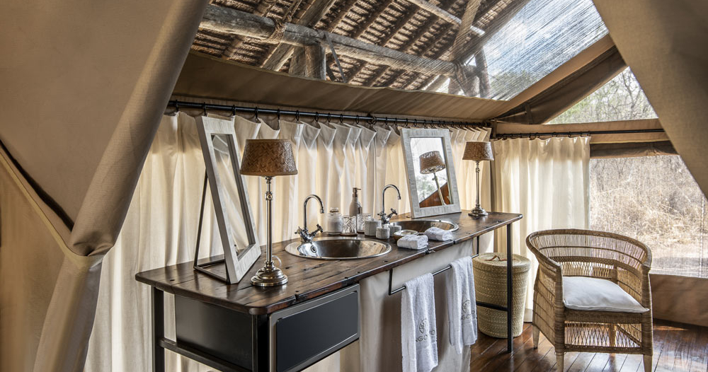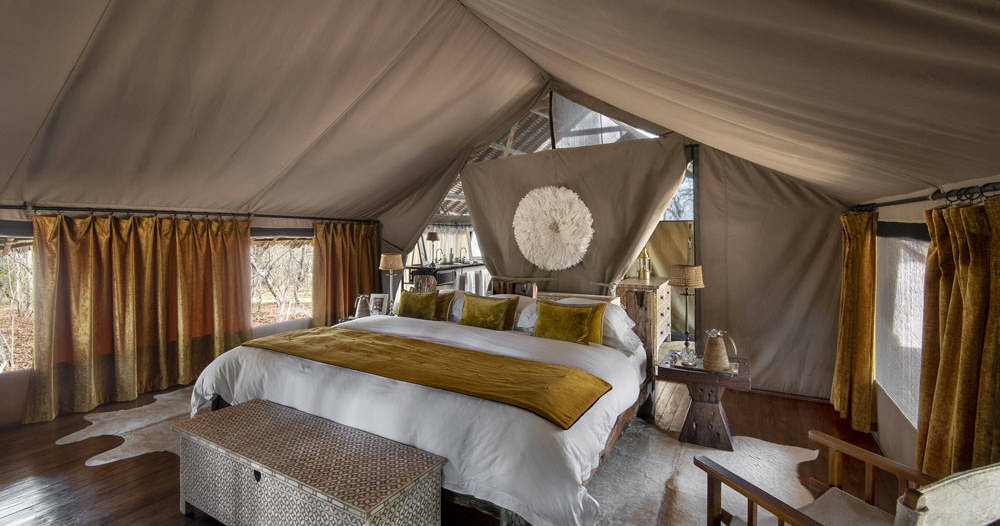Campen består av åtta rymliga och välutrustade tältsviter, placerade på träplattformar under stora halmtak. Varje svit har en privat veranda med utsikt över den torra flodbädden, där djur ofta kan ses vandra förbi. Vill du uppleva en lyxig vistelse i bushen är det här stället för dig.