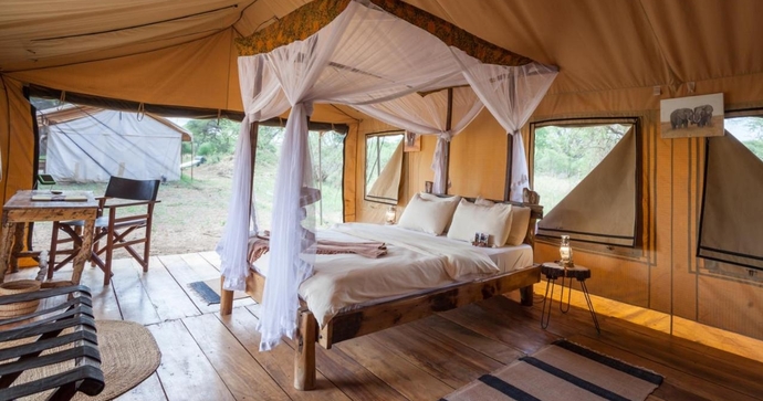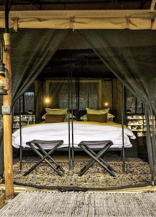 Campen är öppen från juni till mitten av mars varje år och består av sex rymliga safaritält samt ett familjetält, alla med egna badrum och både inomhus- och utomhusduschar. Tälten är utformade för att smälta in i omgivningen och det vilda, med privata verandor som erbjuder spektakulära vyer över parken.