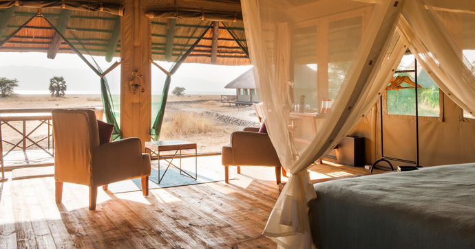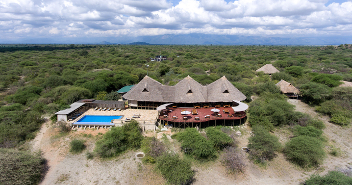 Njut av elegans mitt i naturen. Lodgen är upphöjd på en träplattform under ett halmtak där du kan njuta av måltider med en fantastisk 360-graders utsikt över Lake Burunge och den omgivande vildmarken.