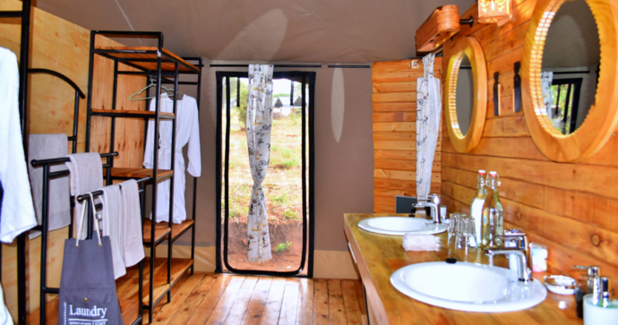 Alla tält har en uteplats, sovrumsdel, och eget badrum med dusch och toalett. Här kan du njuta av naturens lugn och närheten till parkens rika djurliv.