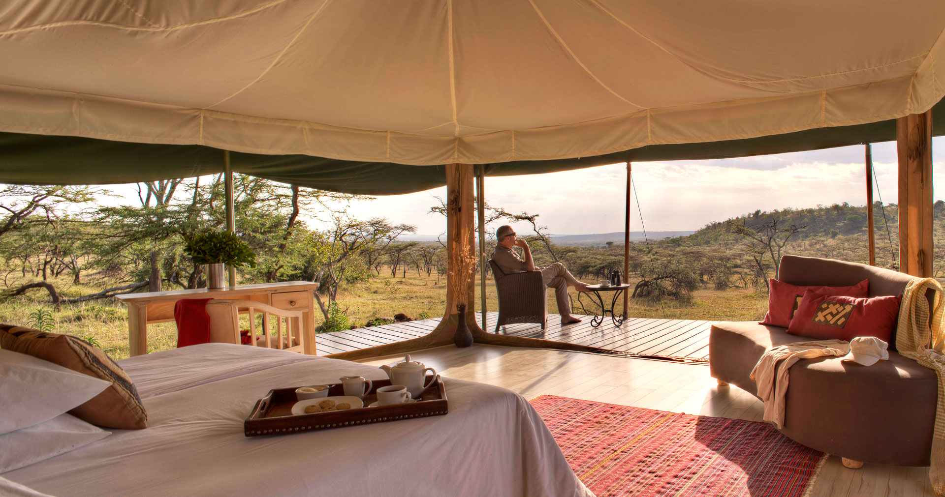 Ta ett svalkande dopp i poolen, njut av personlig service, enastående utsikt och Masai Maras vackra natur. Här finns allt du behöver för en spektakulär och exklusiv vistelse i vildmarken.