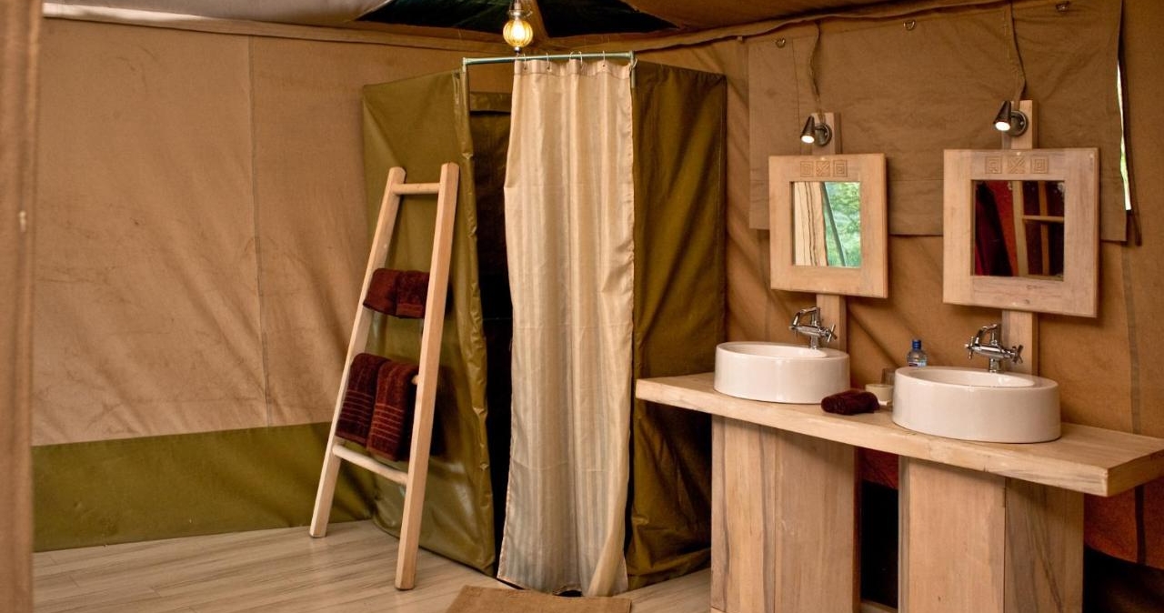 Här finns endast 10 rymliga och komfortabelt inredda tält vilket bidrar till den intima och lyxiga känslan. Varje tält är smakfullt dekorerat med afrikanskt tema. I campens restaurangtält serveras både internationella rätter och lokala delikatesser, tillagade av en erfaren kock.