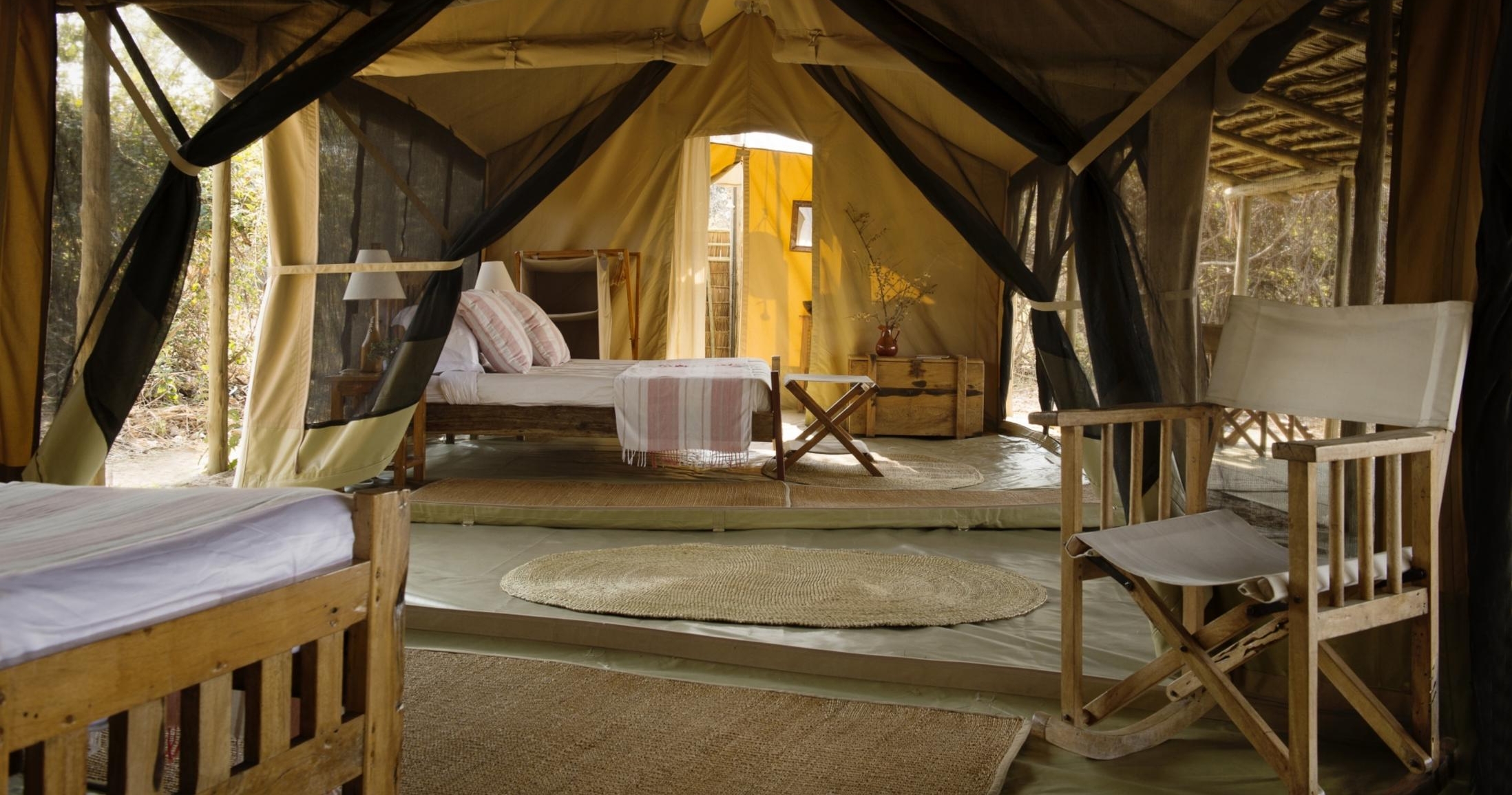 Ni slår upp läger, vanligtvis längs flodernas stränder eller inbäddat i de närliggande skogarna och bor i tält, mitt i vildmarken. Varje tält har en egen hinkdusch och ett eget utedass. Det här är en safariupplevelse utöver det vanliga!