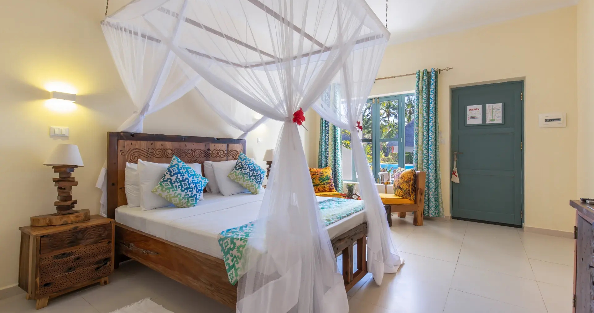 Läget bjuder in till fantastiska soluppgångar, långa promenader på en av Zanzibars vackraste stränder samt bästa läget på ön för snorklings- och dykningsutflykter.