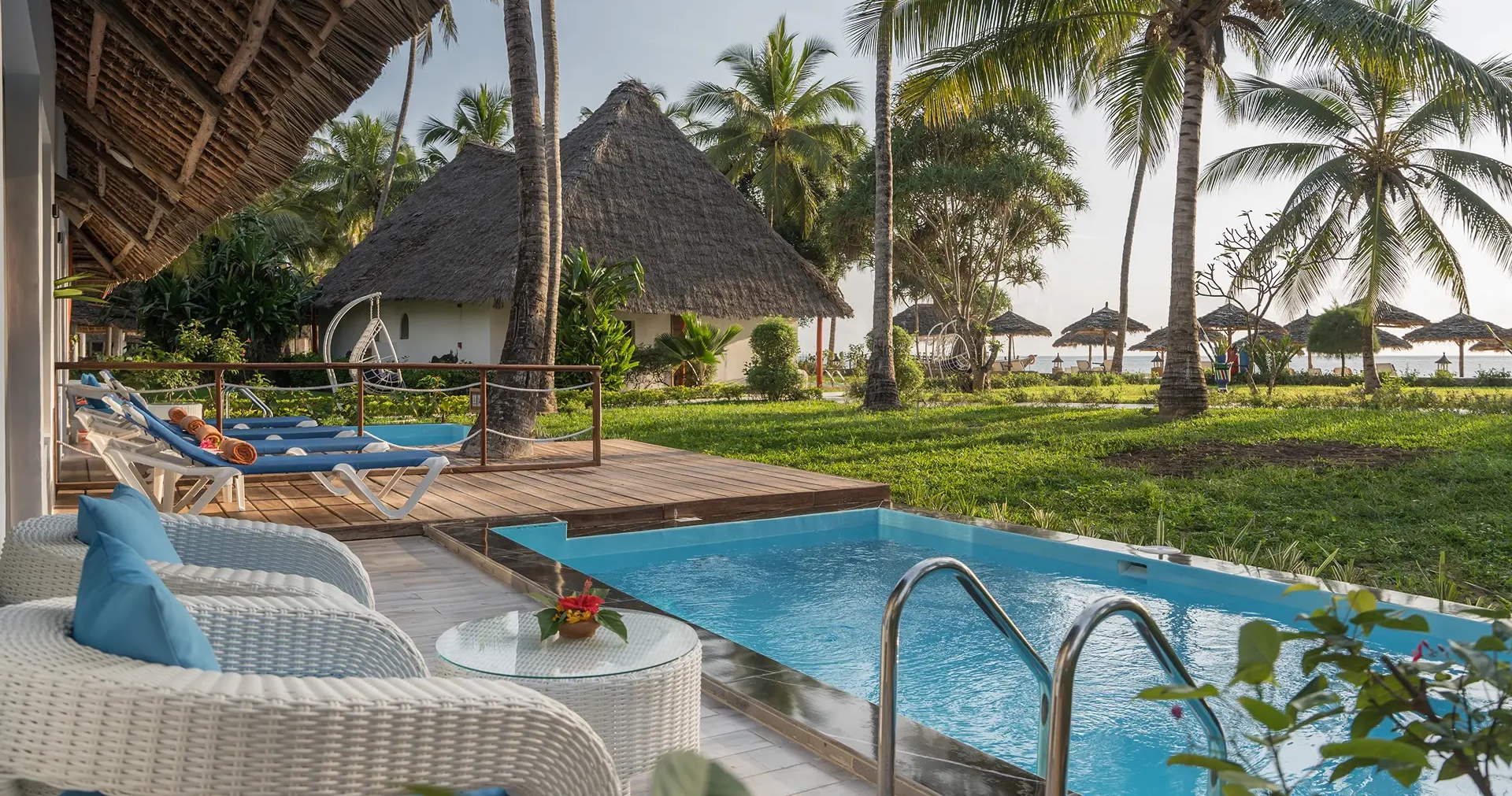 På Neptune Pwani bor du på en av våra favoritstränder på ön där den evighetslånga kritvita stranden drömlikt möter det azurblå havet. Läget på ön är perfekt för den som önskar snorkla eller dyka då revet som ligger strax utanför kustremsan vid boendet bjuder på öns bästa dyknings- och snorklingsmöjligheter.
