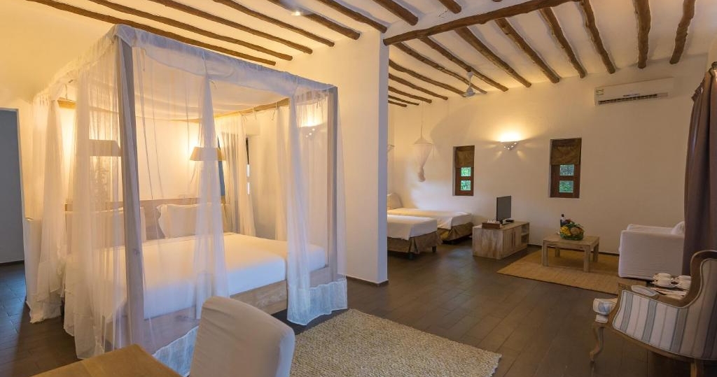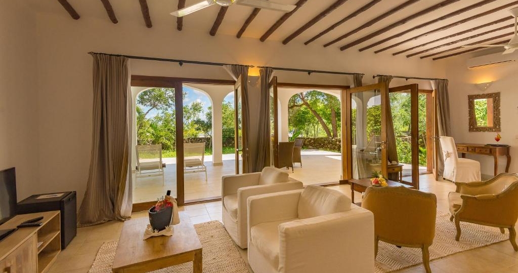 De erbjuder exklusiva villor med privat pool, rymliga uteplatser och modern inredning i zanzibariska influenser. Ett prisbelönt spa, en gourmetrestaurang med lokala och internationella rätter, samt en takbar med panoramautsikt över Indiska oceanen.