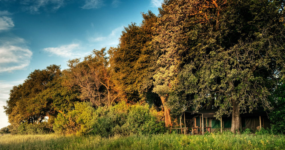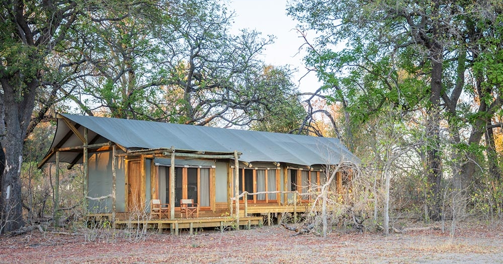 Campen erbjuder åtta tält med egna badrum och vacker utsikt. Här går det att åka på klassiska game drives men också mokoro-turer. Det här är ett perfekt boende för dig som söker en autentisk safariupplevelse i Botswanas vildmark.