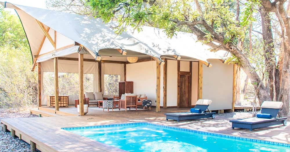 Campen består av tio autentiska safaritält, vilka alla är individuellt utformade och perfekt placerade för att maximera utsikten över omgivningen. Efter en dag i deltat finns det inget bättre än att glida ner i infinitypoolen, omgiven av vildmarkens ljud och vackra vyer.