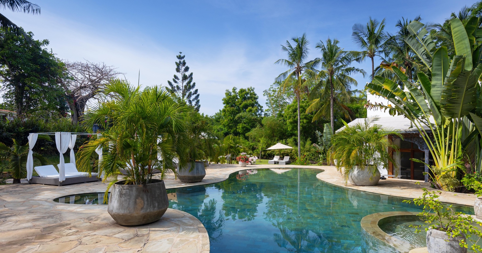 Maya Kobe är en lyxig strandvilla med 4 sovrum. Om ni behöver mer utrymme kan ni hyra en stuga med ytterligare två sovrum. Villan ligger i en vacker tropisk trädgård med privat pool. I priset ingår också en privat kock som lagar härliga och utsökta måltider.