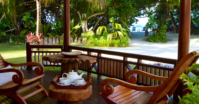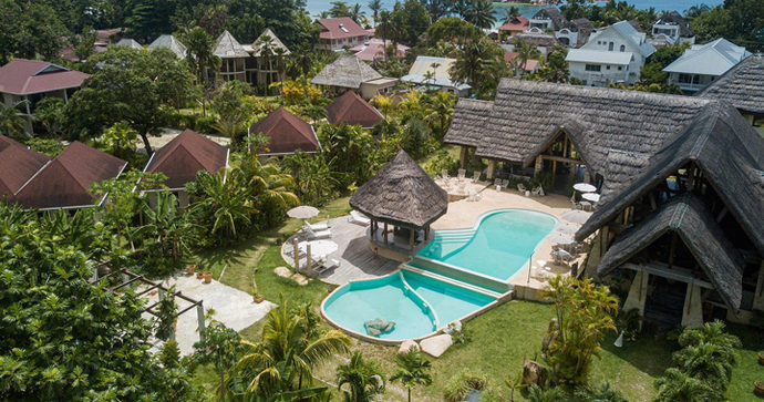 Med den tropiska skogen som bakgrund och omgivet av det milda vattnet i Indiska Oceanen, hittar vi detta underbara hotell på Praslins sydvästra kust.
