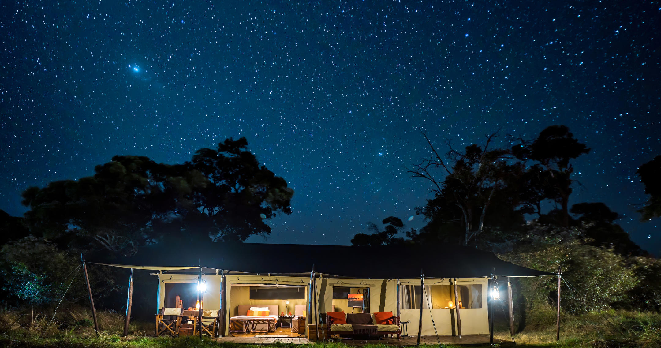 Campen består av ett fåtal rymliga, klassiska safaritält med riktiga sängar, eget badrum och utomhusdusch. Här bor du mitt i vildmarken, men med oväntad komfort. Du vaknar till naturens egna ljud och somnar under en glittrande stjärnhimmel – en autentisk och oförglömlig safariupplevelse, precis som den ska vara.