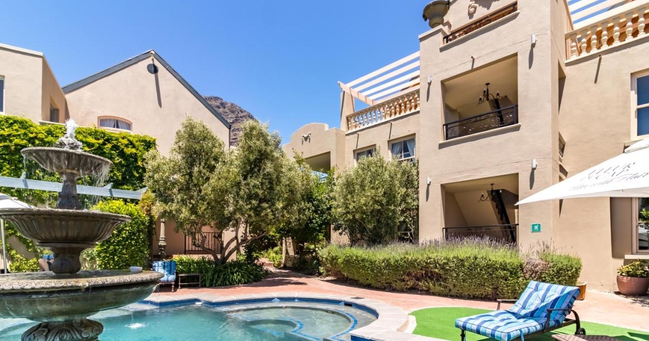 La Fontaine är ett lyxigt boutiquehotell beläget i Franschhoek, omgivet av berg, kullar och vingårdar. Hotellet består av två historiska byggnader med 17 rymliga dubbelrum. Här kan du välja mellan charmiga trädgårdssviter och eleganta hotellrum.