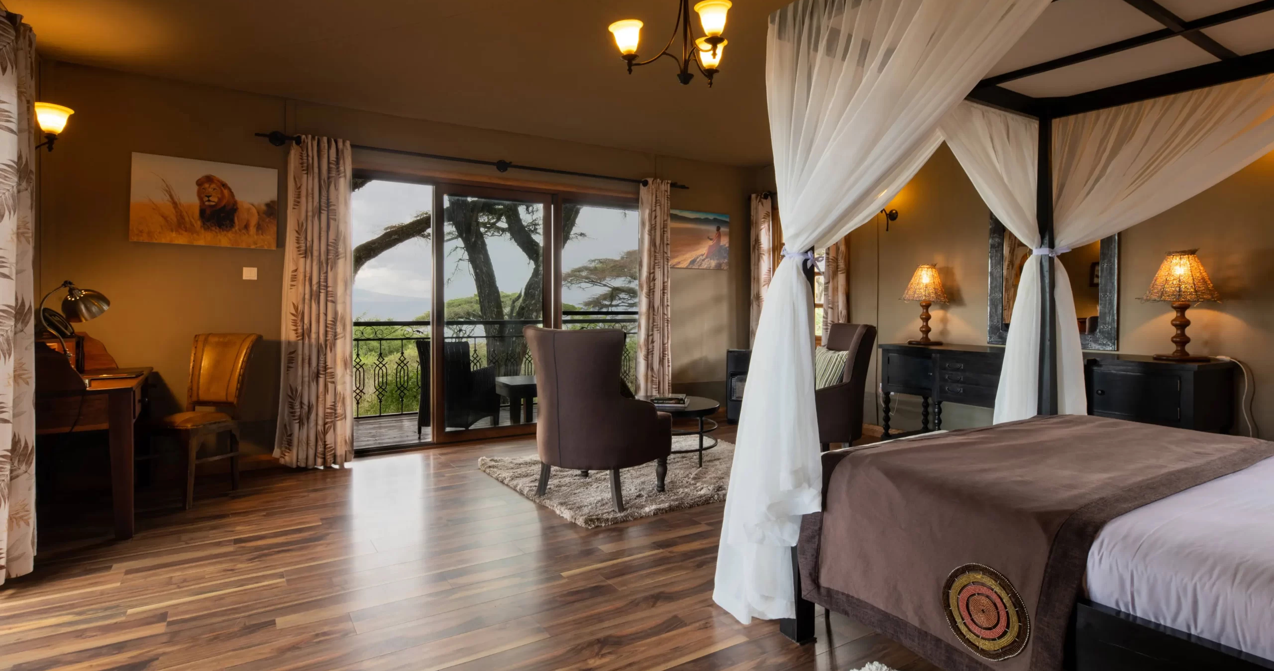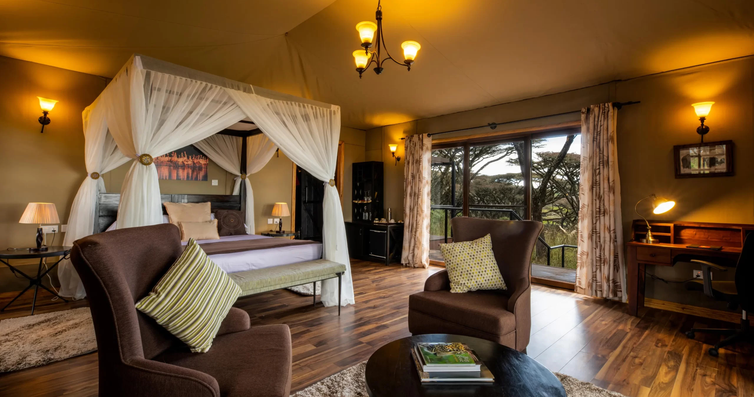 Varje rum är noggrant och stilfullt utformade och har privat veranda med storslagen utsikt. Tänk dig att avrunda dagen på verandan medan du blickar ut över vildmarken och njuter av den otroliga utsikten över kratern.
