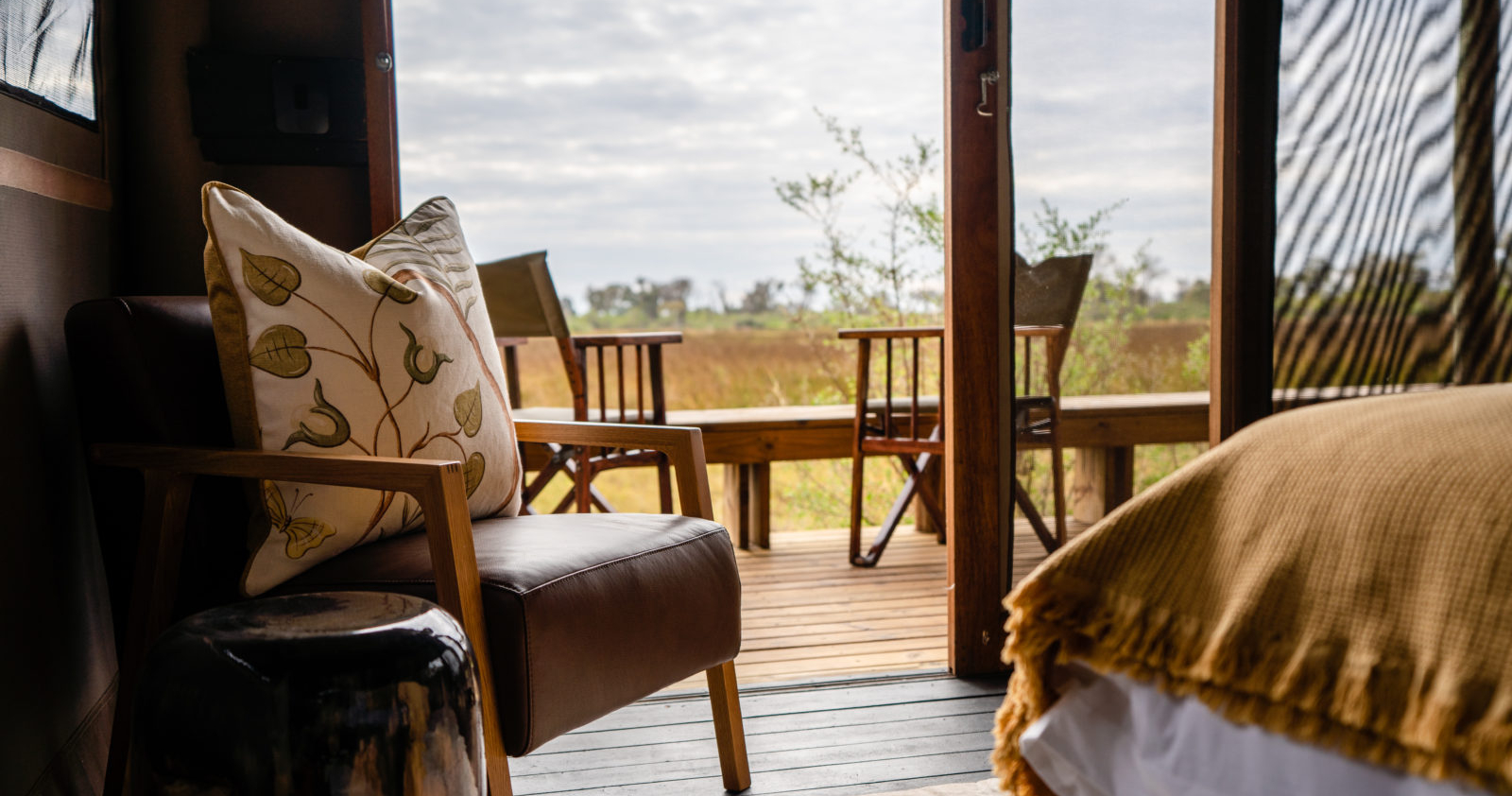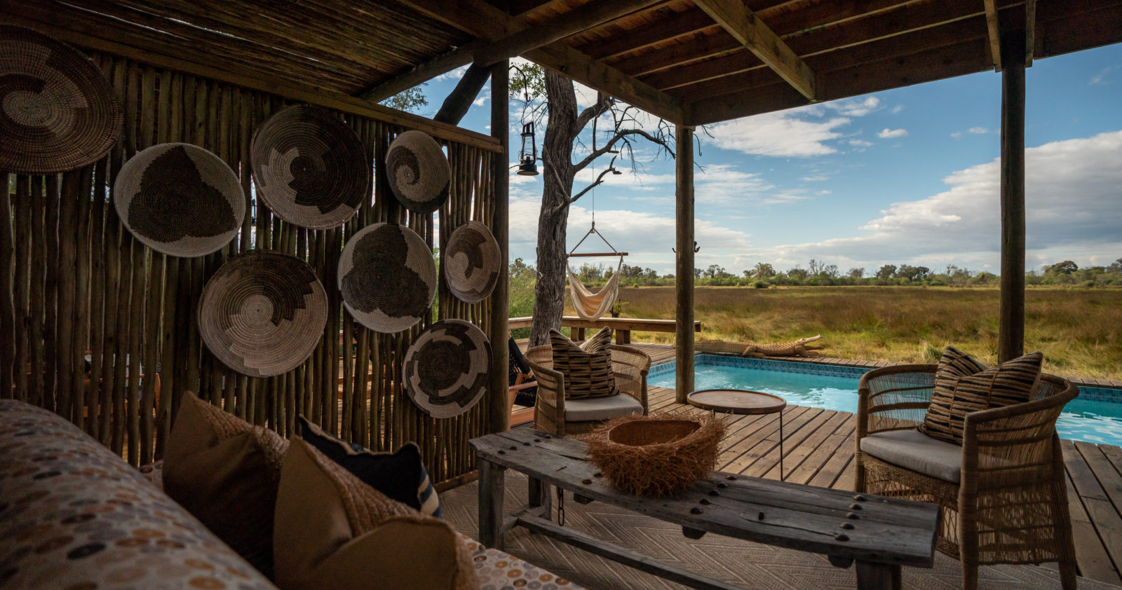 Campen består av tio autentiska safaritält, vilka alla är individuellt utformade och perfekt placerade för att maximera utsikten över omgivningen. Efter en dag i deltat finns det inget bättre än att glida ner i infinitypoolen, omgiven av vildmarkens ljud och vackra vyer.