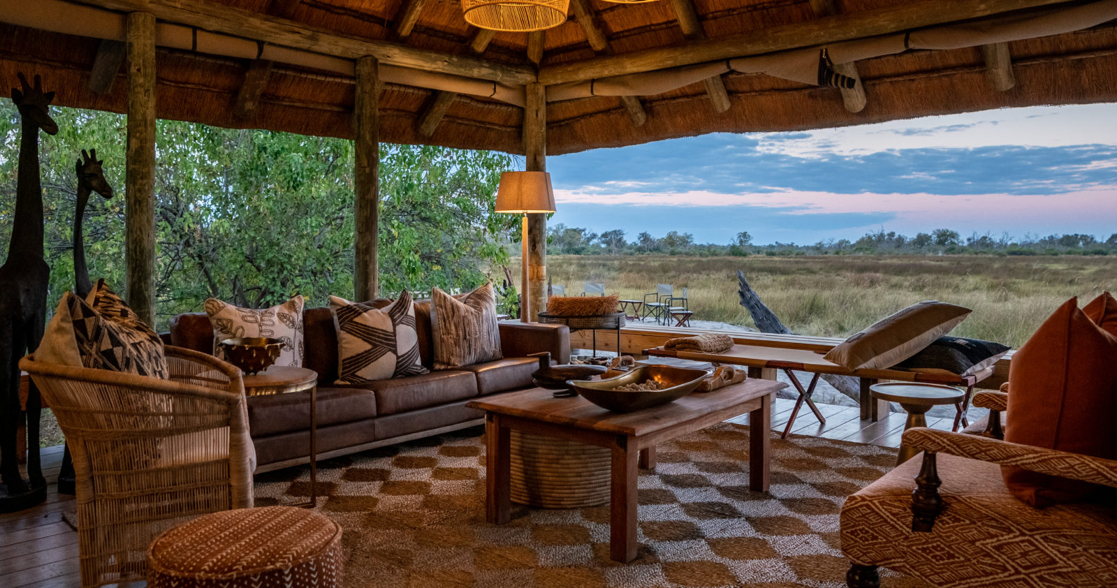 &Beyond Sandibe Okavango Safari Lodge är en exklusiv safarilodge i hjärtat av Okavangodeltat. Lodgen erbjuder 12 lyxiga och luftkonditionerade sviter, som var och en är utformad för att efterlikna vävarfågelbo.