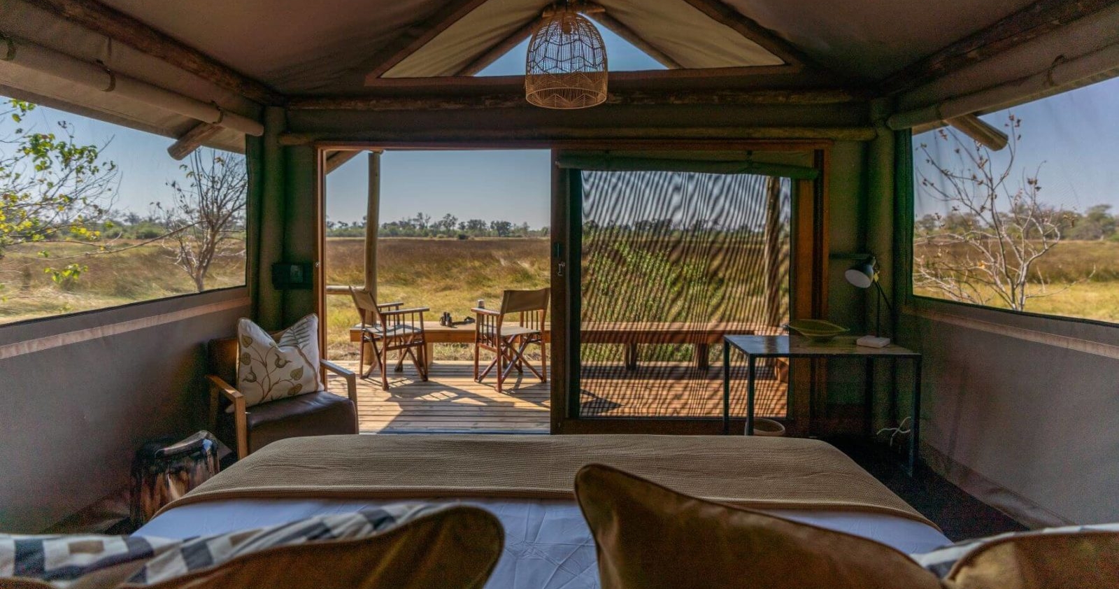 Campen erbjuder åtta tält med egna badrum och vacker utsikt. Här går det att åka på klassiska game drives men också mokoro-turer. Det här är ett perfekt boende för dig som söker en autentisk safariupplevelse i Botswanas vildmark.